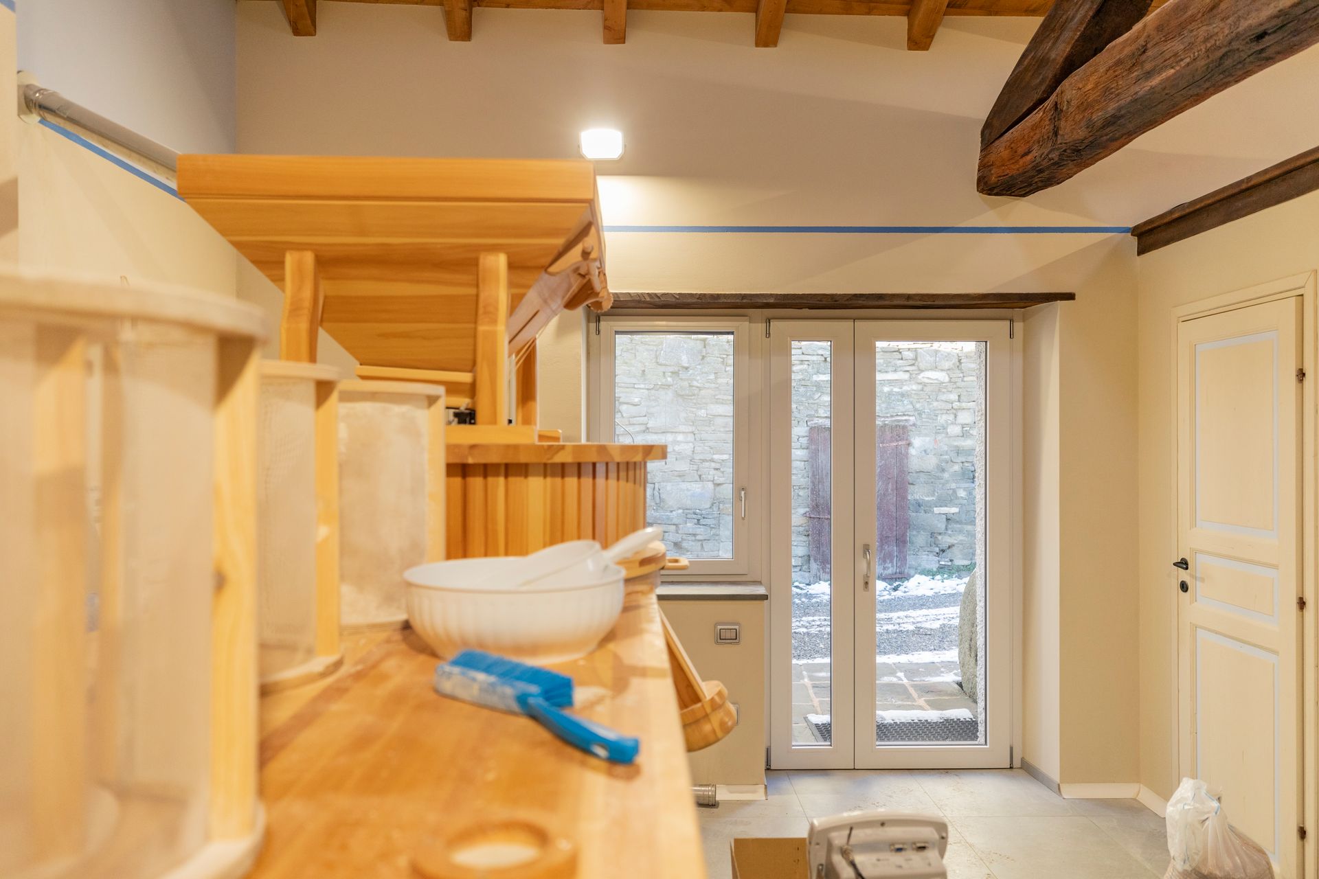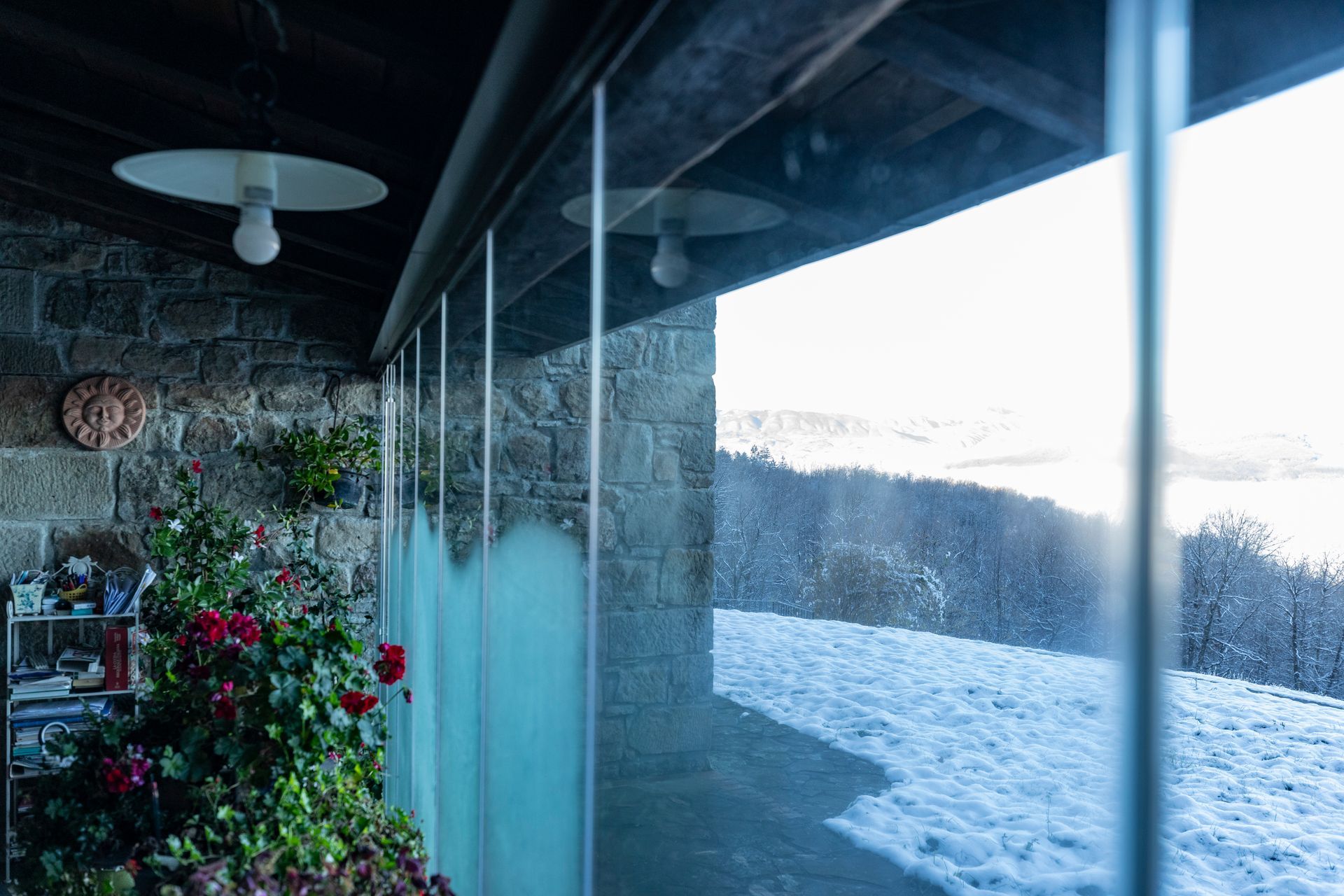 Gli infissi di questa abitazione montana, con il loro design pulito e luminoso, si sposano armoniosamente con l'aspetto rustico delle mura, offrendo un'esperienza visiva coesa e piacevole. Progettati per l'efficienza energetica, questi serramenti assicurano un ambiente interno caldo e silenzioso, permettendoti di vivere la montagna con il massimo del comfort. Uno sguardo basta per percepire la promessa di benessere, isolamento acustico e protezione termica che essi garantiscono.