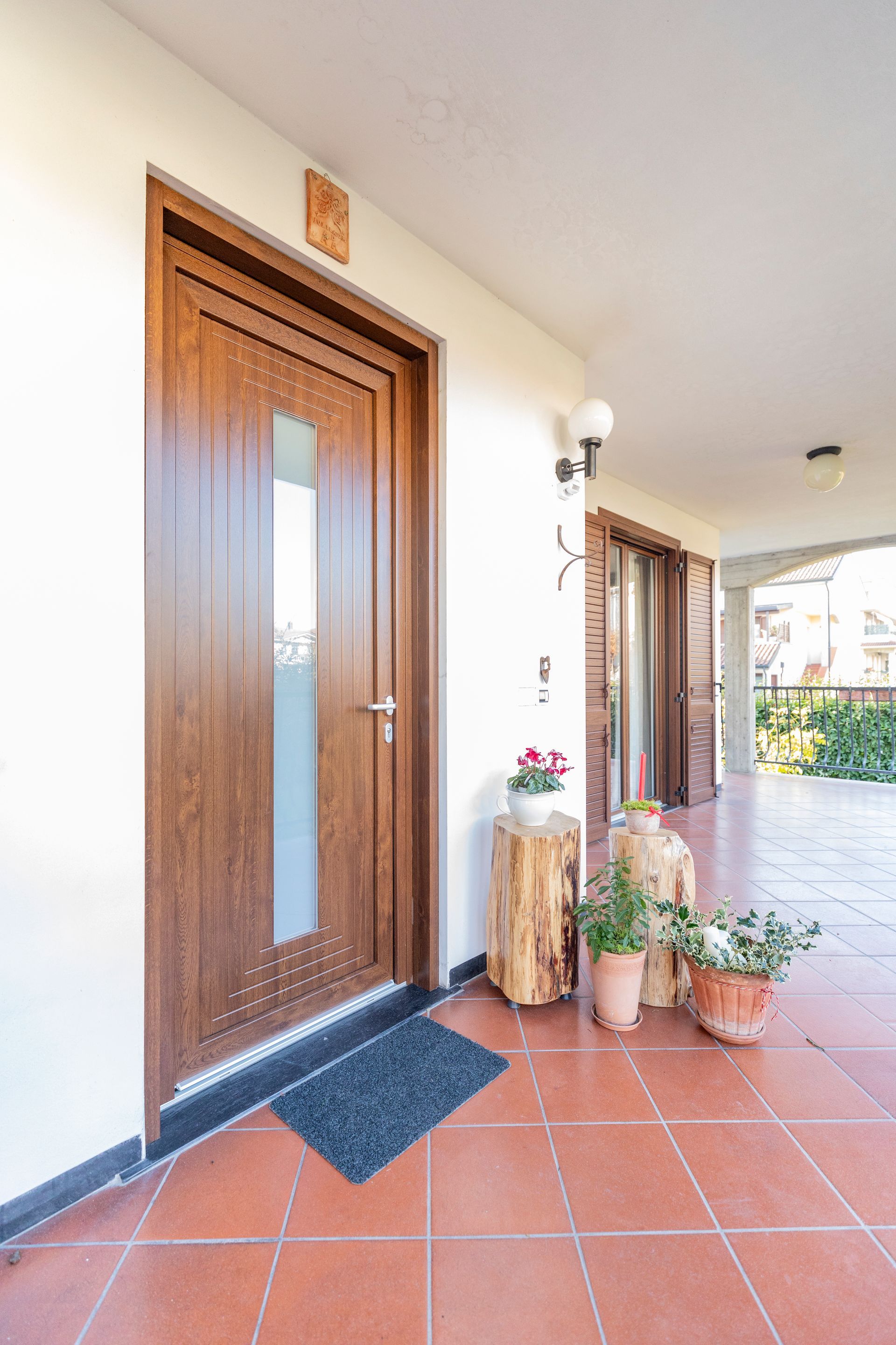 Questa realizzazione riflette un connubio di stile e praticità attraverso i suoi elementi interni. Dalla porta d'ingresso alla porta finestra, ogni apertura è stata scelta per la sua capacità di migliorare l'abitabilità degli spazi, garantendo al contempo sicurezza e comfort. Il design sobrio ed elegante si sposa con l'uso quotidiano, offrendo una transizione fluida tra i diversi ambienti della casa