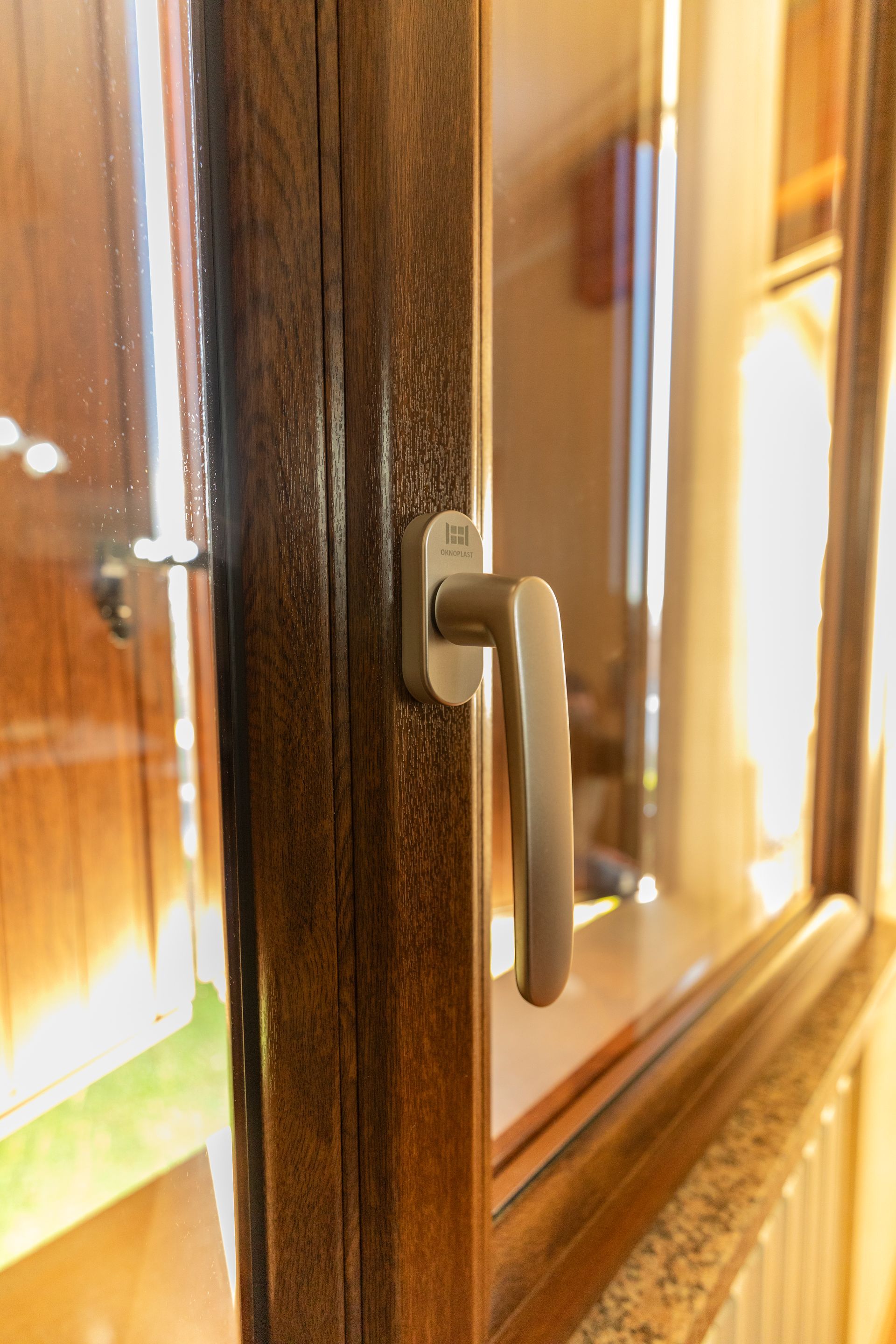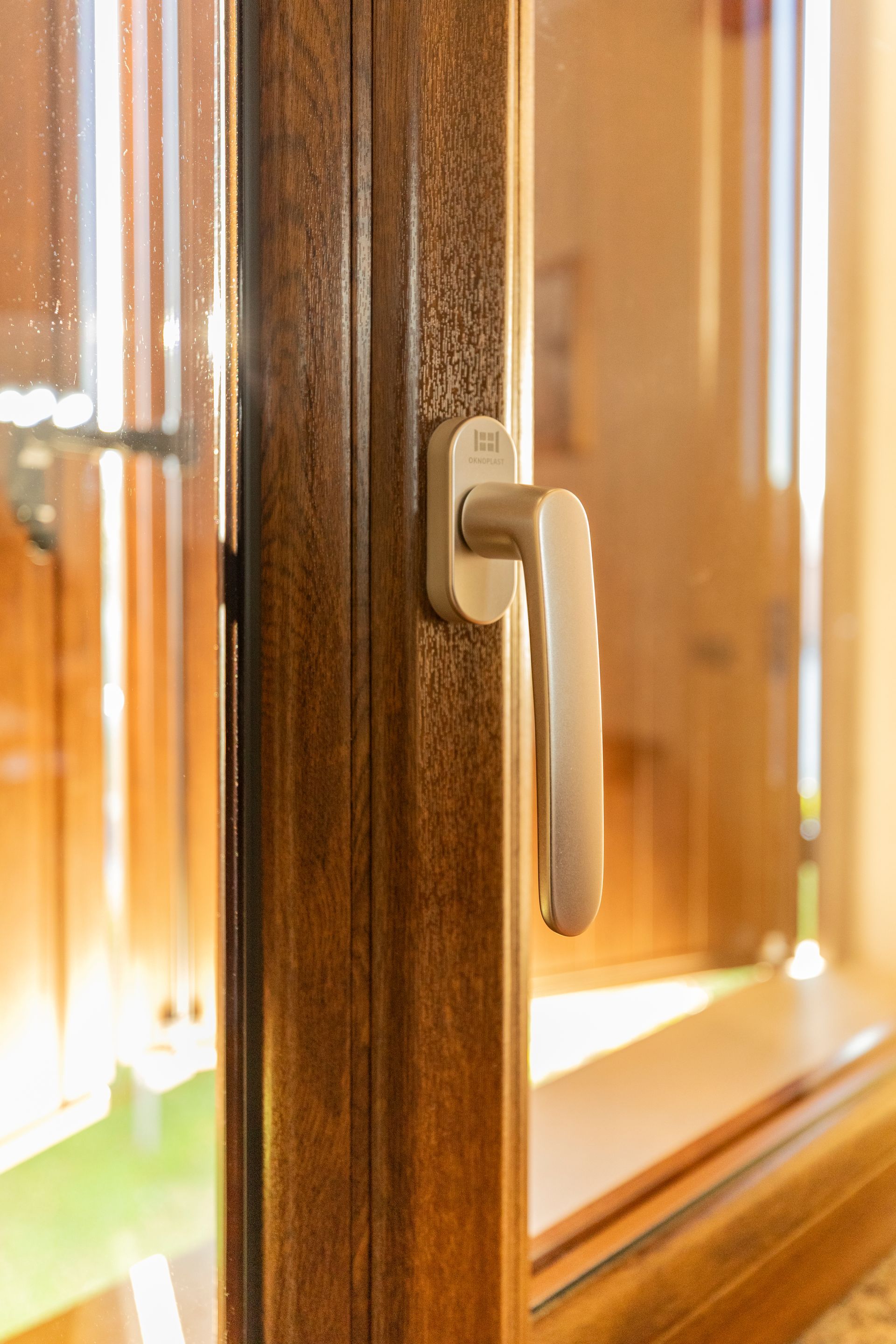 Questa collezione di porte e finestre si armonizza con la sobrietà dell'ambiente, proponendo un'immagine di casa accogliente e serena. Il design contemporaneo delle maniglie e la finitura del legno si fondono in un equilibrio che rispetta la tradizione senza trascurare le prestazioni. Il risultato è un ingresso che promette comfort, sicurezza e un piacevole senso di casa.