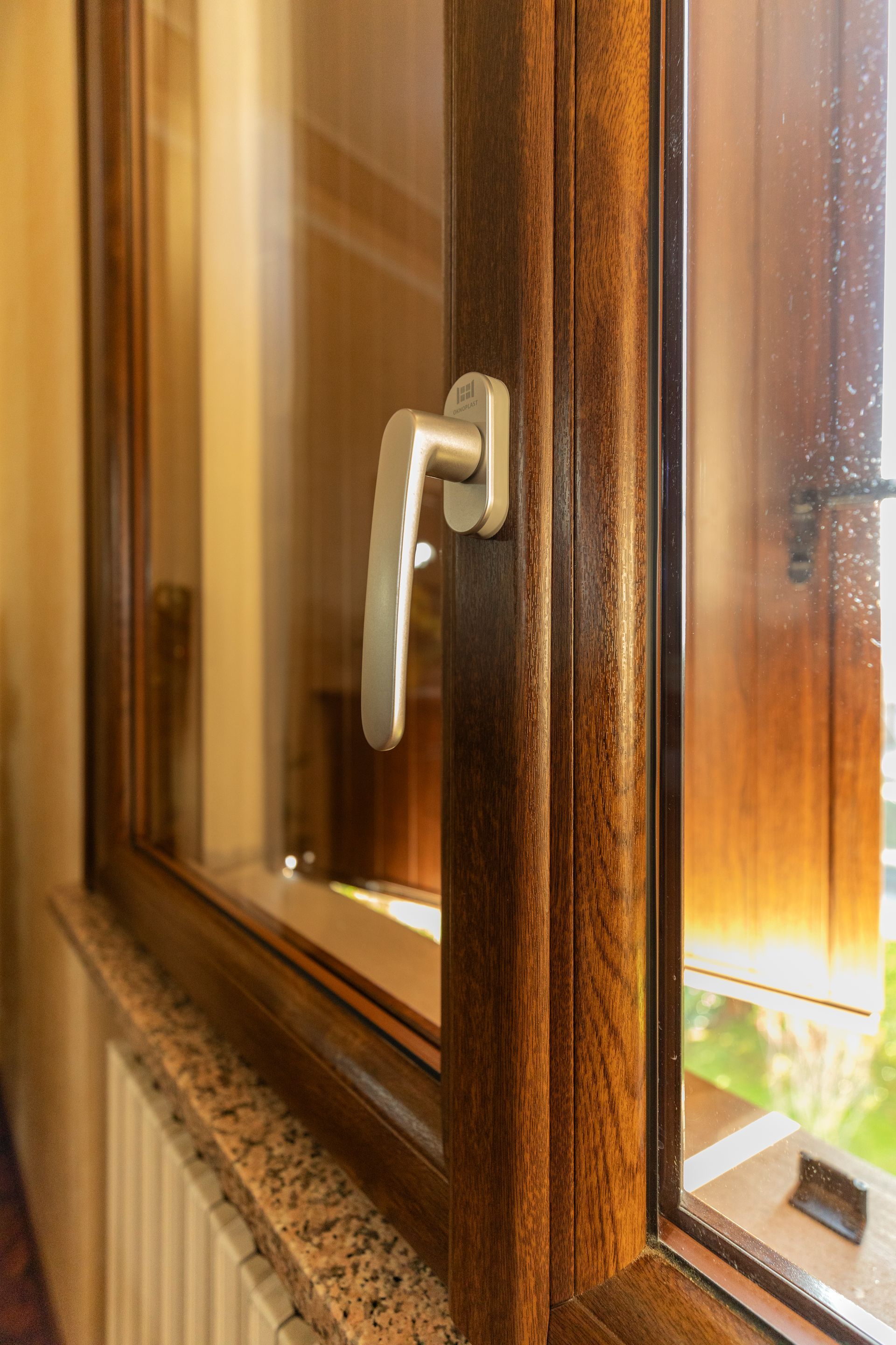 Queste finestre, con i loro profili in legno robusto e maniglie dal design moderno, si integrano armoniosamente nell'interno domestico, offrendo un perfetto equilibrio tra funzionalità e stile. La luce che filtra attraverso evidenzia la qualità dei materiali e la cura del dettaglio, contribuendo a creare un ambiente caldo e accogliente. Questa realizzazione non solo abbellisce la casa, ma migliora anche l'esperienza di vita quotidiana, garantendo privacy e un ottimo isolamento termico.